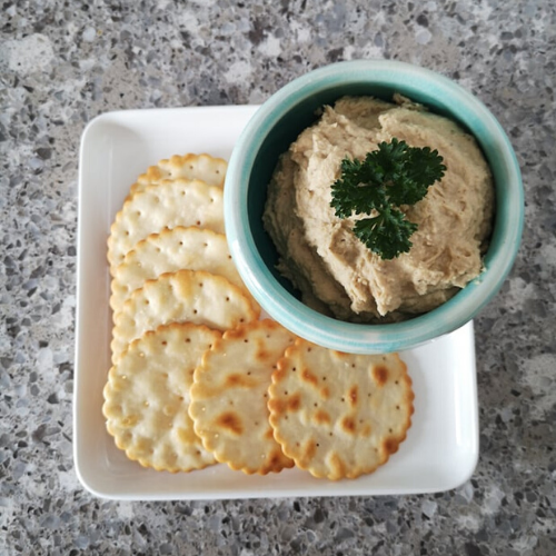 - Spoon the hummus out of the blender and serve with crackers or toasted pita bread!