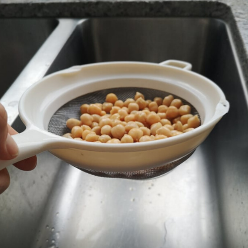- Drain the chickpeas and pour them into a food processor or blender.
