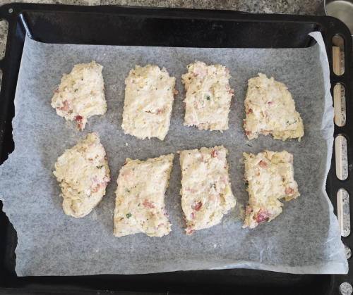 - Lightly knead together the rest of the dough and continue cutting more scones until all the dough is used.