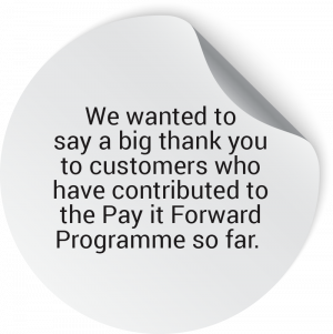 Since the launch of the Pay it Forward Programme, we have seen an amazing response from our customers, with many signing up to contribute.